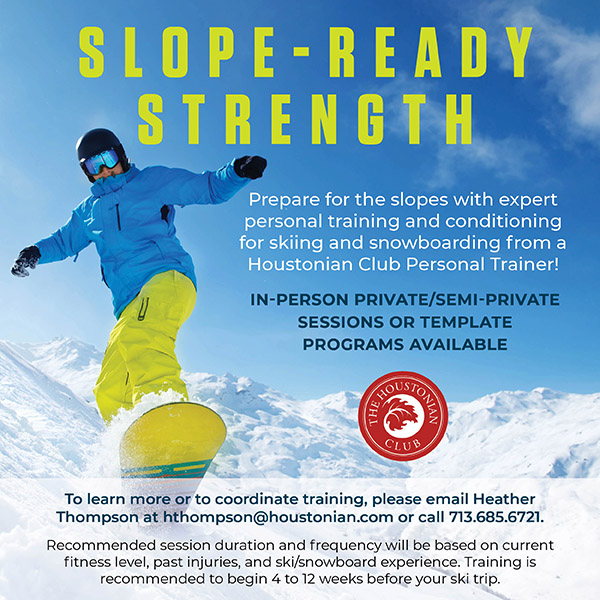 Prepare for the slopes with expert personal training and conditioning for skiing and snowboarding from a Houstonian Club Personal Trainer!